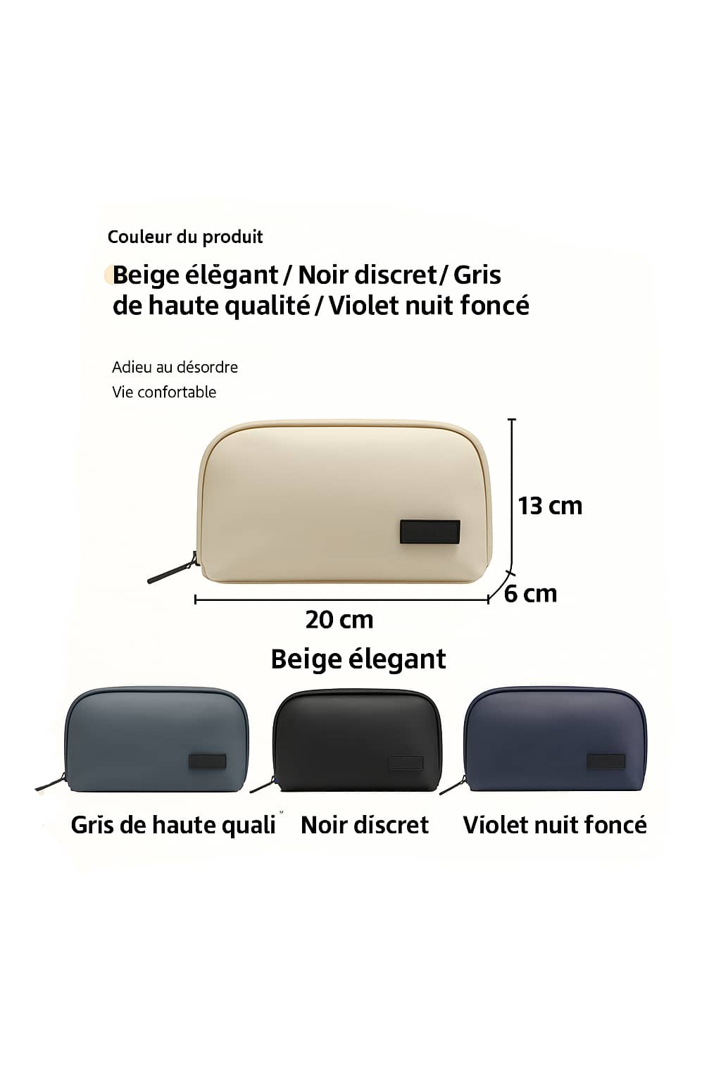 Couleur disponibles: beige élégant, gris de haute qualité, noir discret, violet nuit foncé